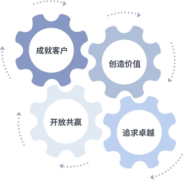 成就客户是一切决策的出发点,创造价值是衡量所有工作的标准,追求卓越是大发彩票做事做人的态度,开放共赢是大发彩票的格局也是最终的结果。价值观的齿轮环环相扣,推动着组织里的每个人不断向前。